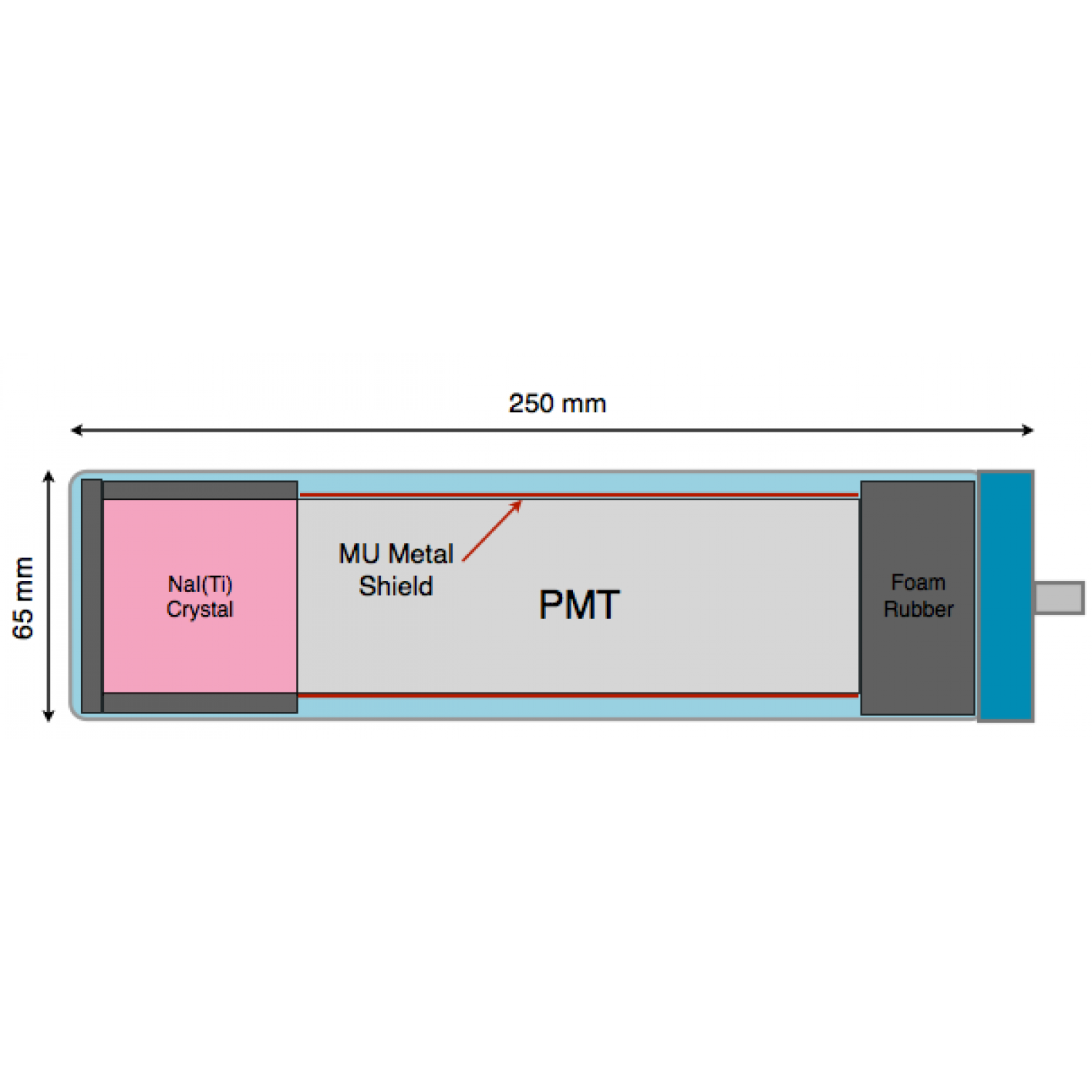 This detector is a great general purpose detector, it has a 51 x 51 mm encapsulated crystal, coupled to a PMT with integral voltage divider, the whole package is housed in a spun aluminium housing and capped off with an aluminium cap and SHV connector. Pearl white powder coat finish.