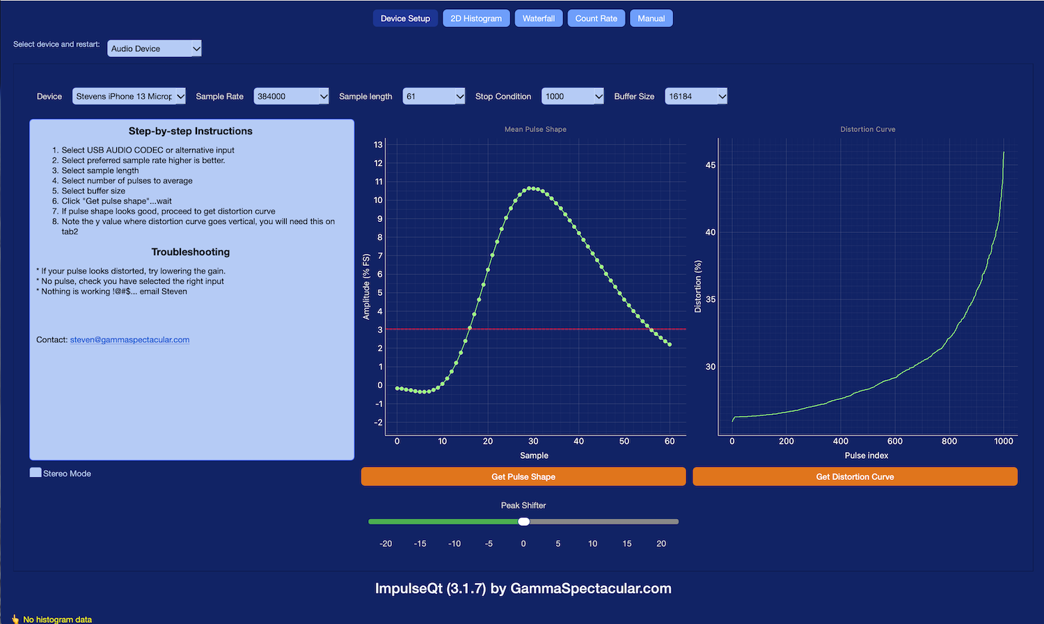 • Pulse shape plot y-axis changed from raw 16-bit values to percentage of sound card input (% full scale). ✅