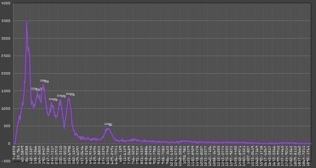 Hi, i've taken a 16h spectra of a Trinitite sample, 3"x3" Luuk detector with my new modular lead shield.