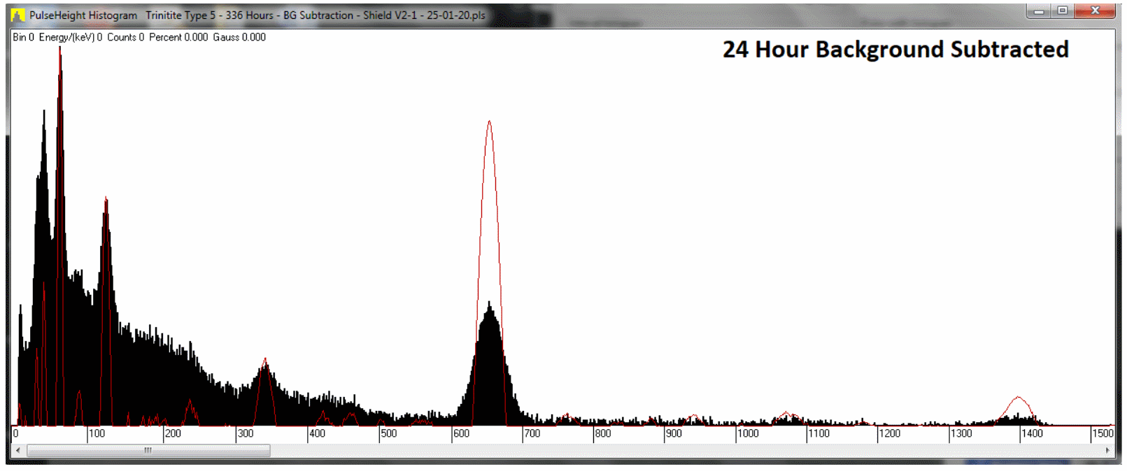 Talking about the shielded background, as I mentioned above I originally planned to record a 24 hour background first, then focus on the sample, and then subtracting the first from the second.